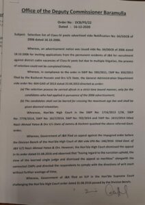 Class 4th selection list of Baramulla advertised in 2006 finally declared by worthy Deputy Commissioner Baramulla after 14 years